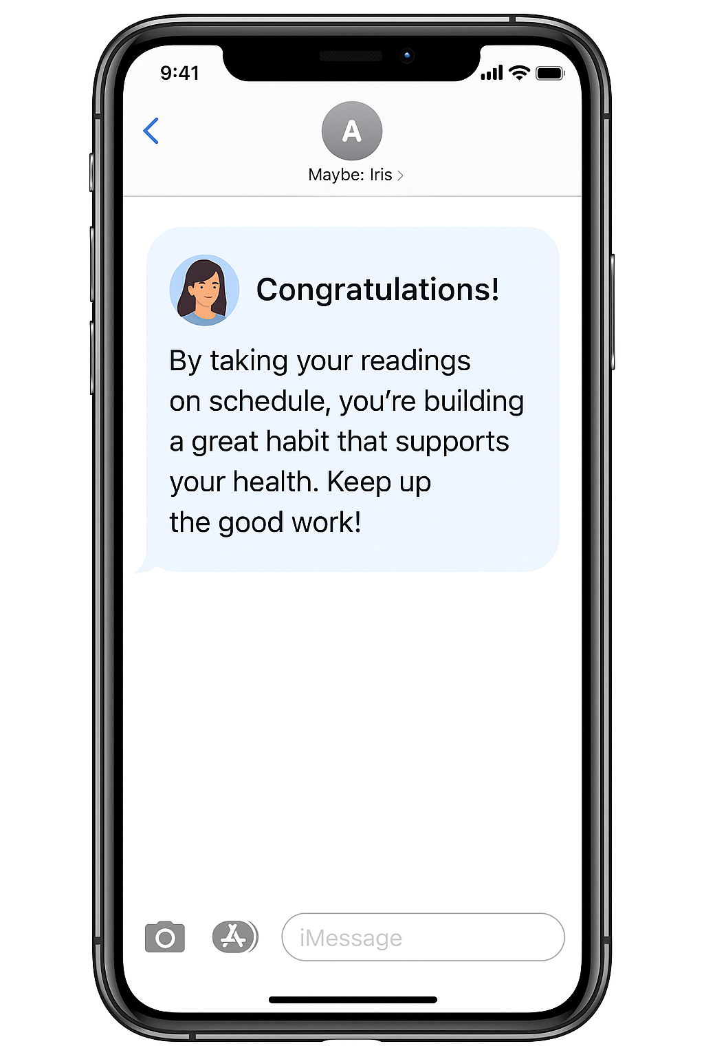 Compliance deserves recognition. Iris celebrates milestones and healthy habits with kind words and motivating messages.